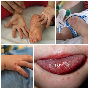 Ngoài khoang miệng thì những nốt đỏ còn xuất hiện ở tay, chân của trẻ. Gây khó chịu khắp cơ thể trẻ.