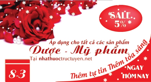 Nhân ngày Quốc tế Phụ Nữ (8-3), Hệ thống nhà thuốc trực tuyến (nhathuoctructuyen.net) xin được dành trọn tình cảm cho tất cả những người Phụ nữ với lời chúc Sức khỏe - Hạnh phúc - Thành công.