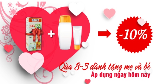 2) Giảm 10% cho các đơn hàng khi mua 01 sản phẩm Dược Mỹ phẩm bất kỳ (dành cho mẹ) + 01 sản phẩm Special Kid bất kỳ (dành cho bé).